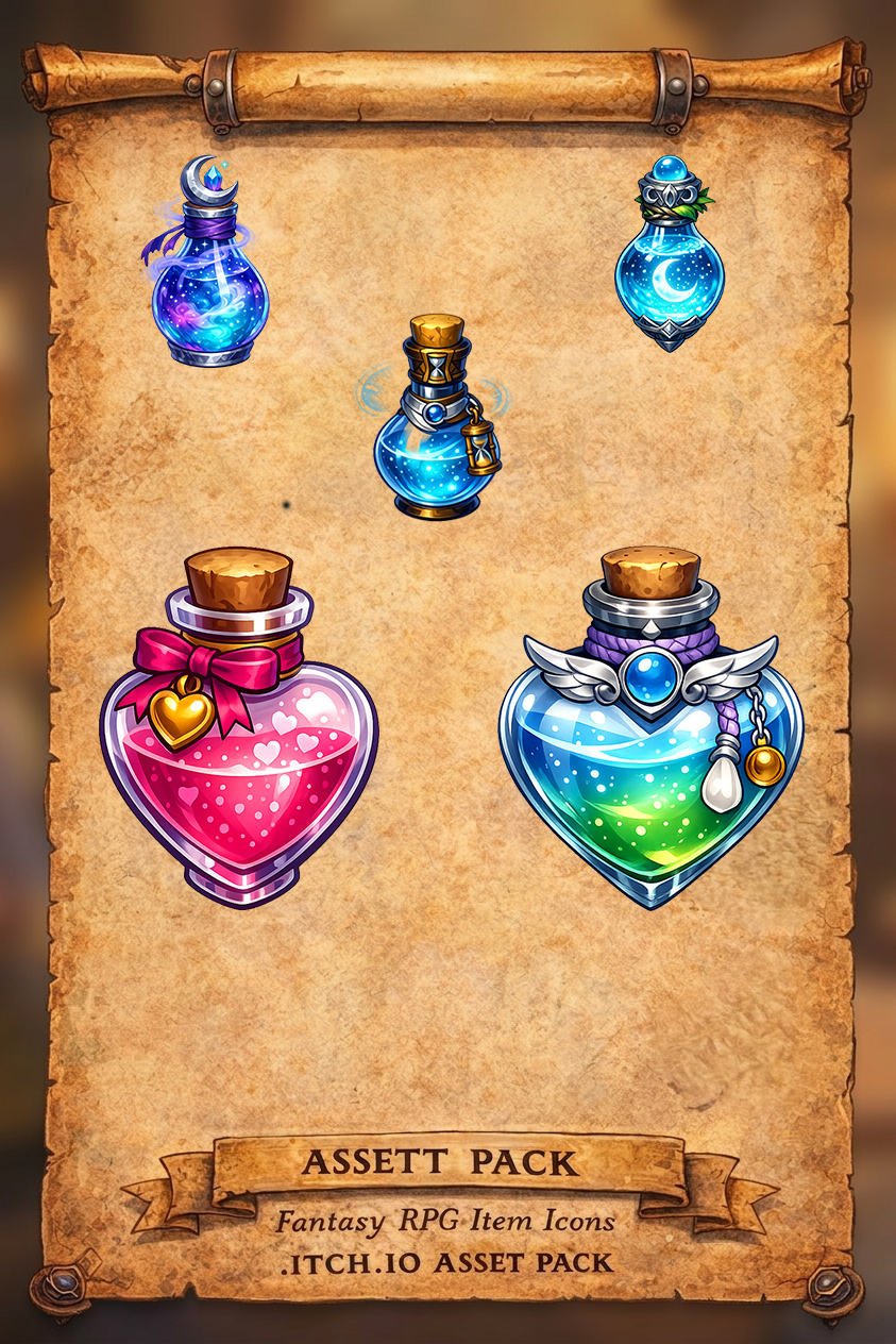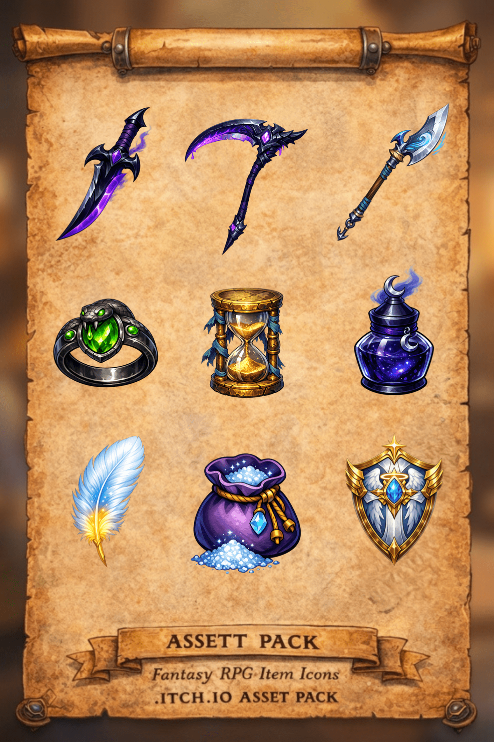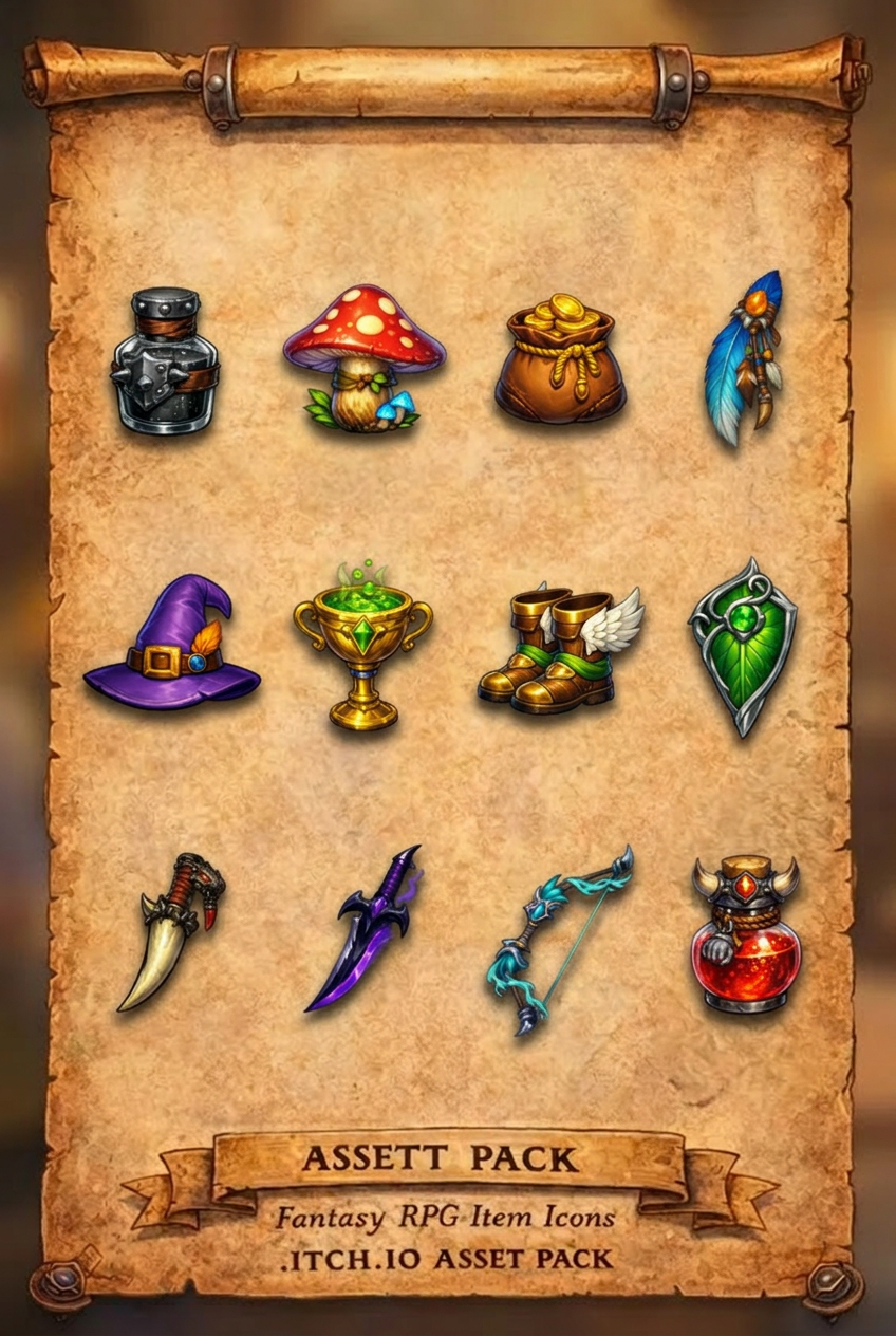 A professional hand-crafted collection of +100 fantasy RPG item icons ready to use in your game. Every icon is designed to look clean, readable, and consistent across your entire inventory system.