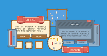 - Pixel Art UI Kit: Perfect for retro adventures and charming indie games! โ๏ธ Includes dialogue boxes, inventory menus, and classic pixel buttons.